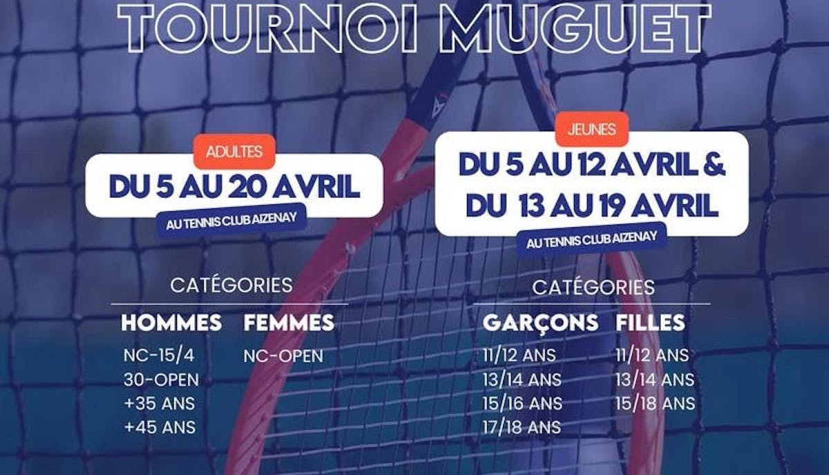 Le Tennis Club d'Aizenay organise le tournoi du Muguet du 05 au 20 Avril 2025.