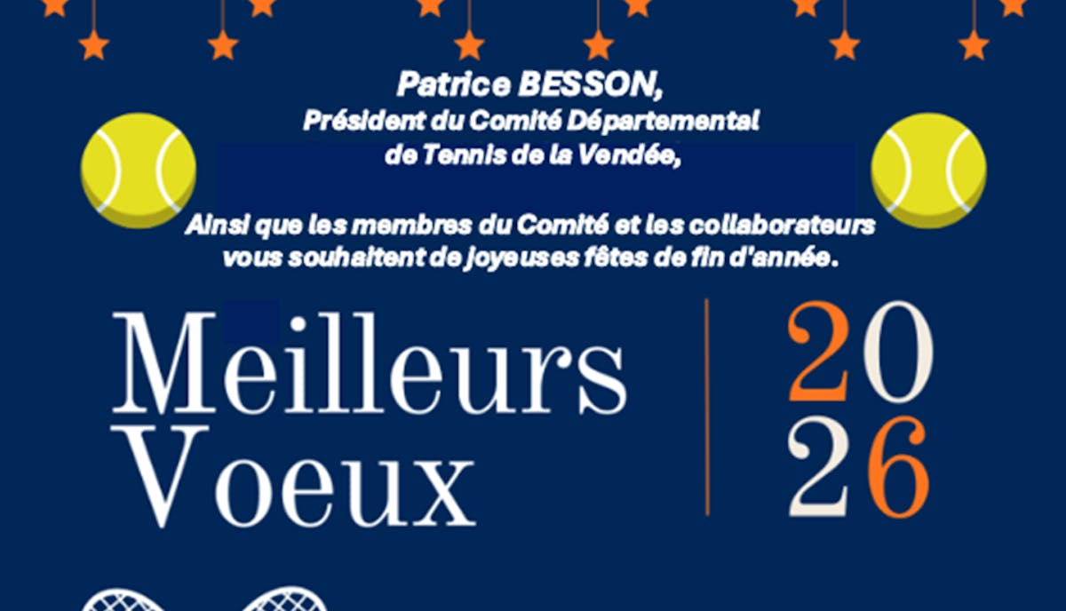 En ce début d’année 2026, je tiens à vous adresser, au nom du Comité Départemental de Tennis de la Vendée, mes vœux les plus sincères de santé, de réussite et de plaisir partagé autour de nos terrains.