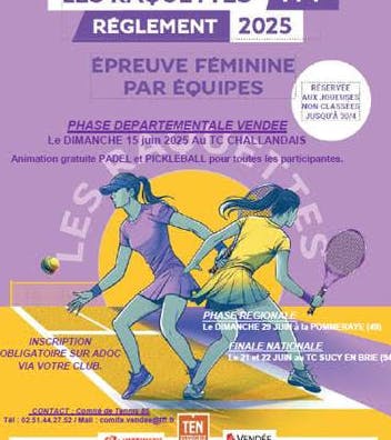 Cette année, la phase départementale a lieu au Tennis Club de Challans le dimanche 15 juin.